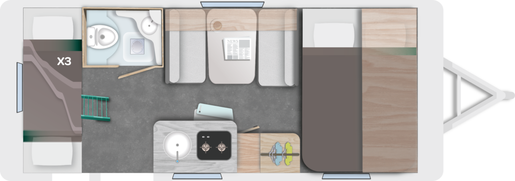 • Tres literas en la parte trasera, ideal para familias numerosas, sin necesidad de bricolaje.