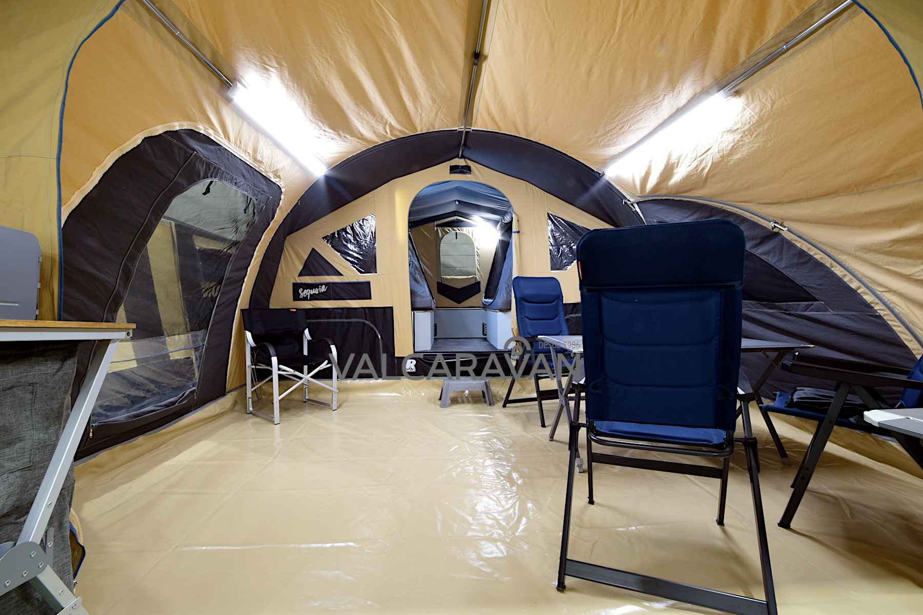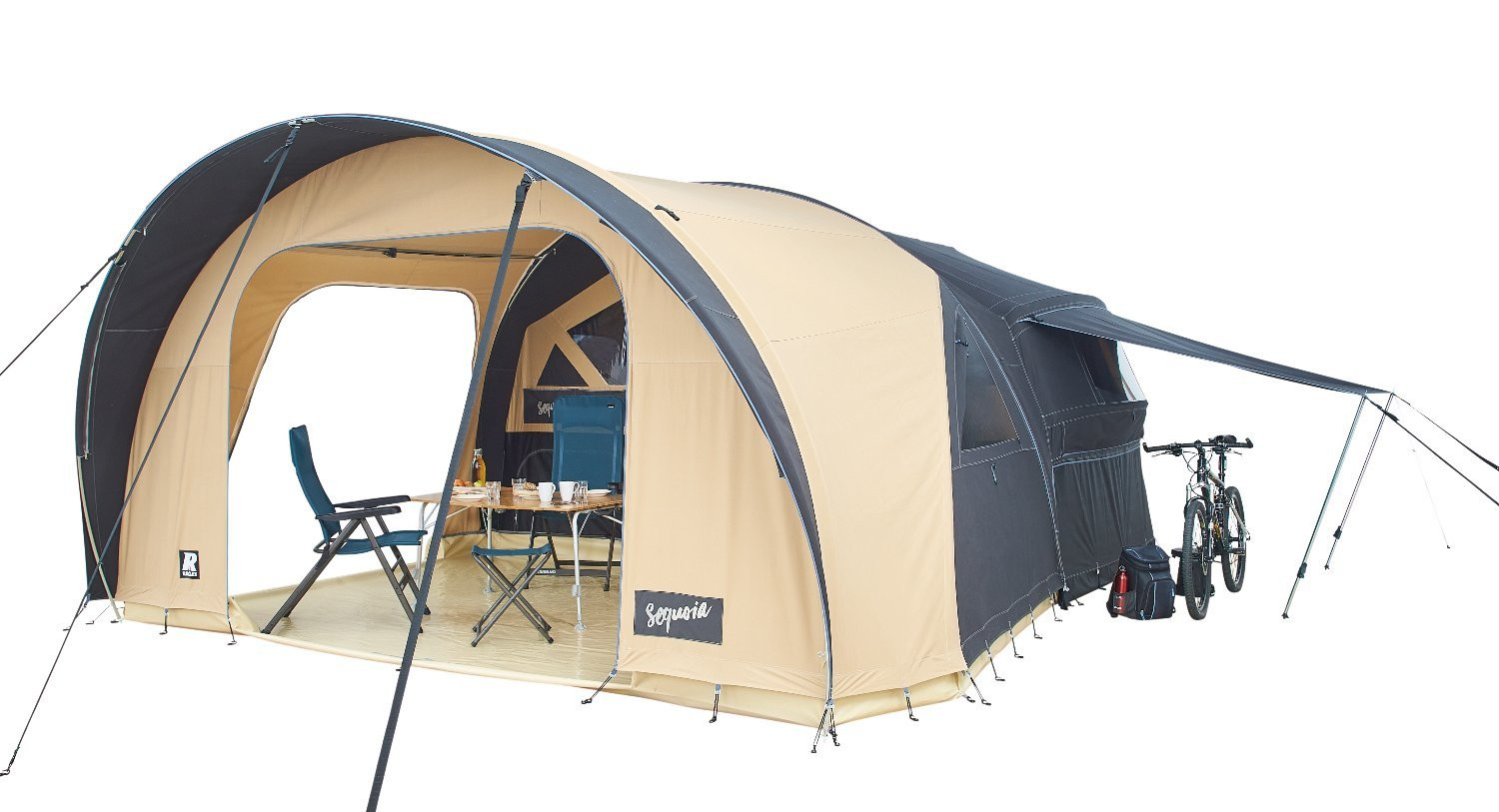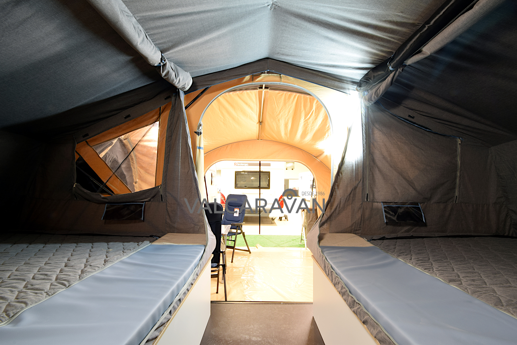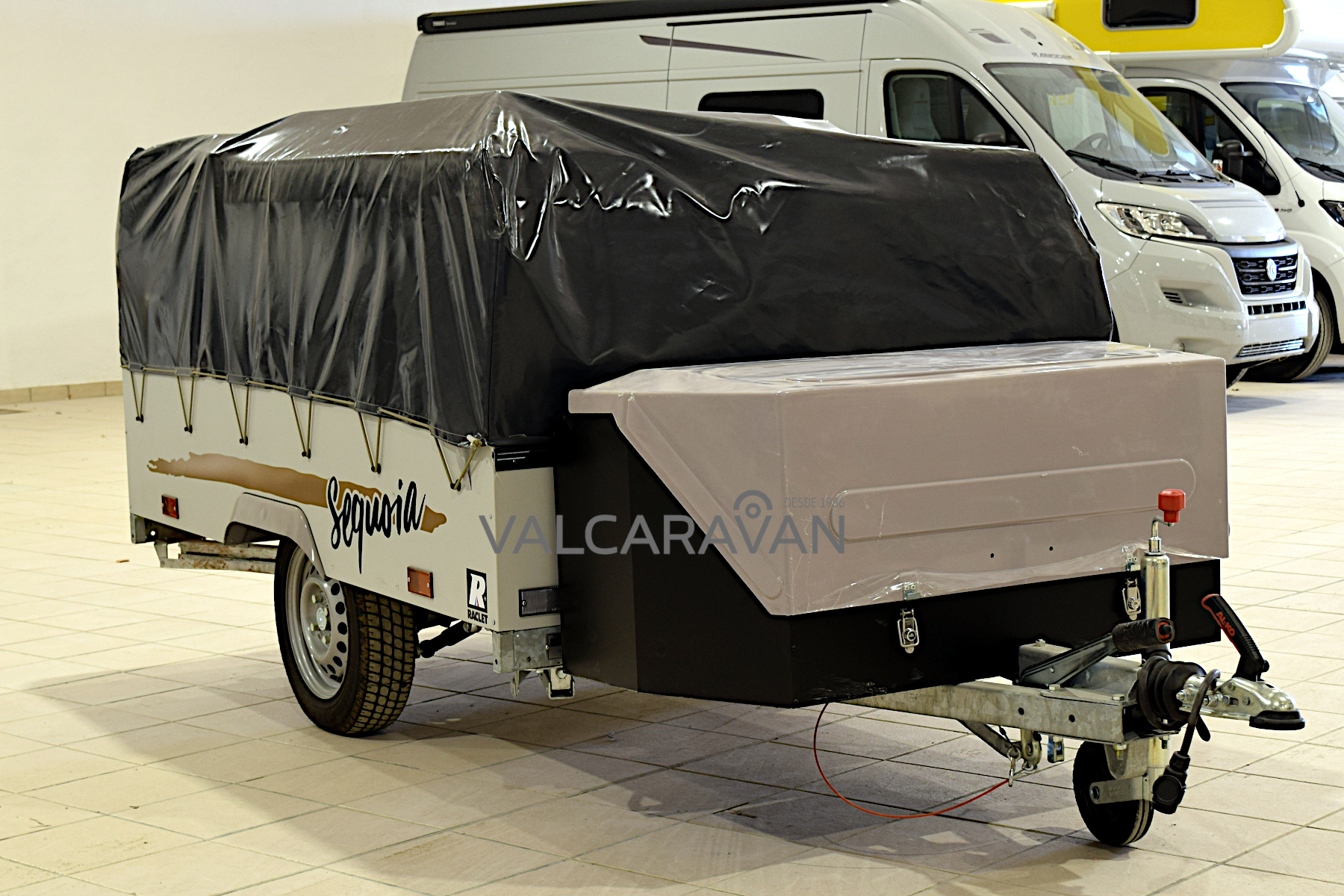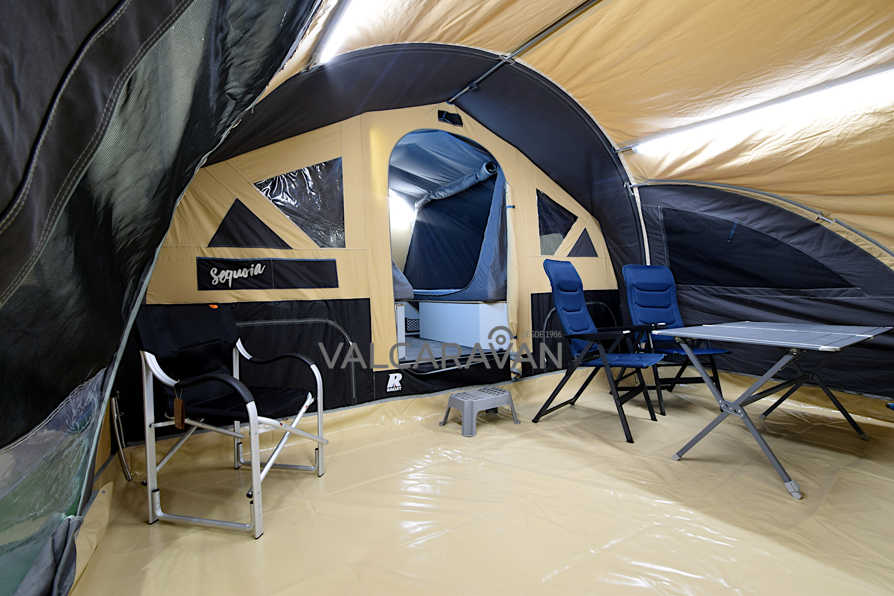 Remolque convertible a tienda de campaña RACLET SEQUOIA. En stock. Máxima gama en carro tienda para acampada.   Dos camas dobles con somier de láminas de 165×210 cm y colchones de calidad, más comedor central con bancadas con asientos en polipiel. Oscurecedores y mosquiteras en todas las zonas. Arcones interiores. Posibilidad de hasta 8 plazas, de avance hinchable, toldo y anexo, de baca y gran arcón, de mueble cocina (versión con cocina)… ¡Configúralo a tu gusto! Hasta 40 metros cuadrados en total. Arcones interiores. Patas de apoyo reforzadas. Varios montajes posibles: vivienda de uso rápido, o vivienda más más avance, o vivienda más avance y anexo lateral… Un montaje para cada ocasión. Opcionales: -Avance completo. -Avance completo hinchable. -Habitación inferior para plaza extra. -Faldones remolque. -Bloque de tomas 220V y USB. -Cofre delantero 300L. -Anexo lateral. -baca portaobjetos. -Rueda de repuesto con soporte. -Suelo estanco avance. -Frenos de inercia y de mano.
